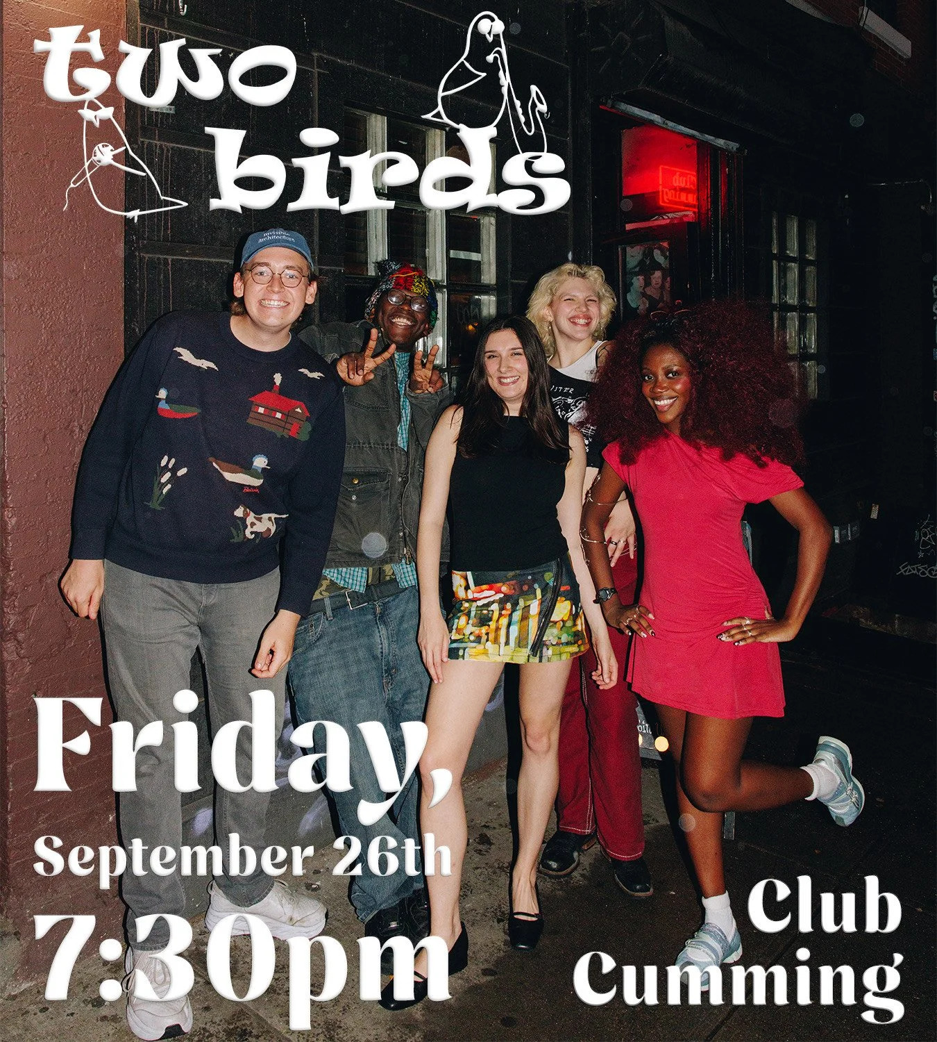 Two birds, one stone, you get the idea! Two Birds is a show that combines two of the best parts of life on planet Earth: comedy and of course, music. Hosted by Megan Striff-Cave, this show features some of the funniest comedians alongside the NYC-based funk band, The Ruckus.