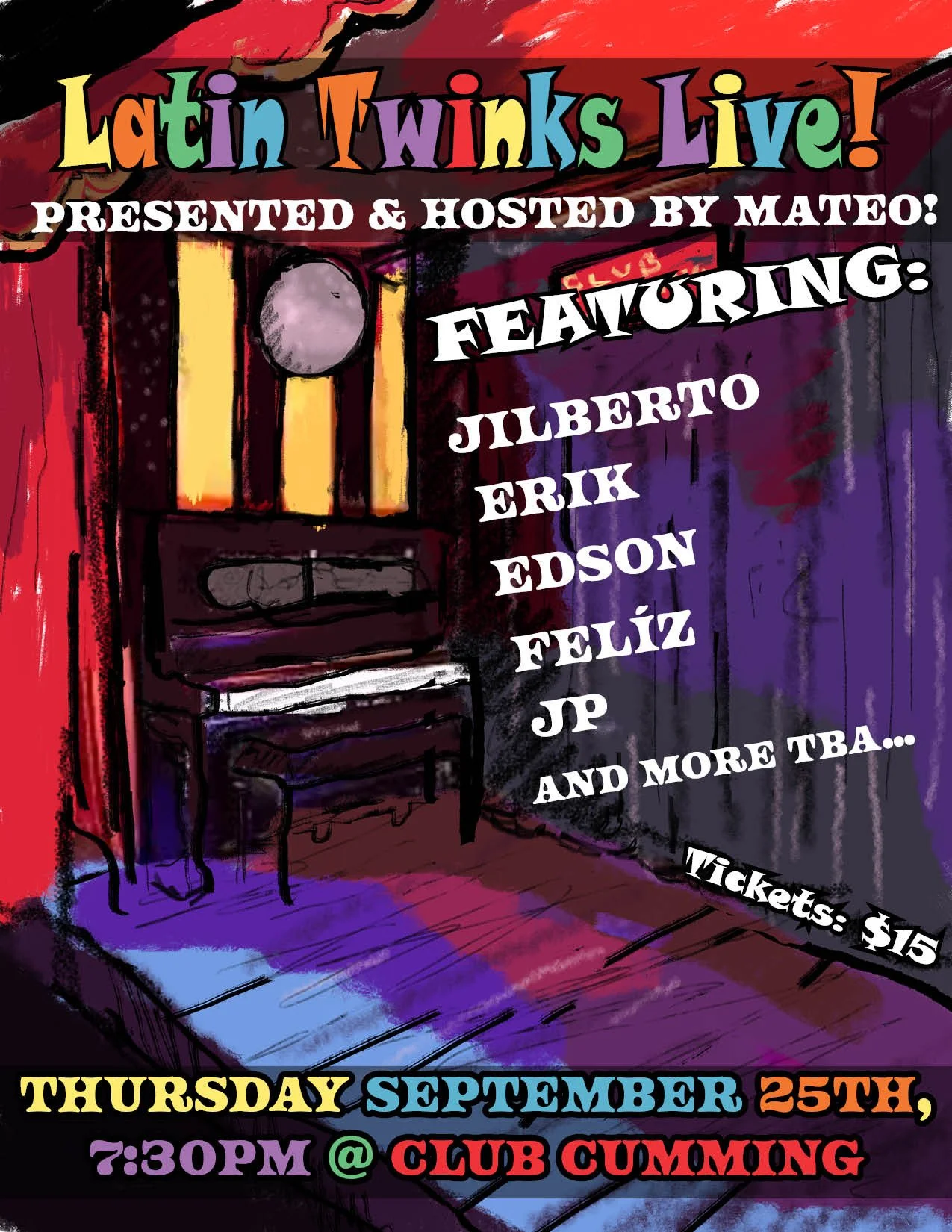 Lights! Camera! Acción! Knee deep amidst Hispanic Heritage Month is none other than: LATIN TWINKS LIVE! With some Spanglish, spice, and a swarm of silliness, host & comic Mateo Rodriguez-Hurtado MC’s and curates this one night only noche of tantalizing stand-up combining New York City’s ferocious laughter-inciting latin twinks for all to see. Channelling a cacophony of twinks, twunks, (demon or otherwise!) and bustling bozos, this raucous Jueves will be one you won't soon forget!
